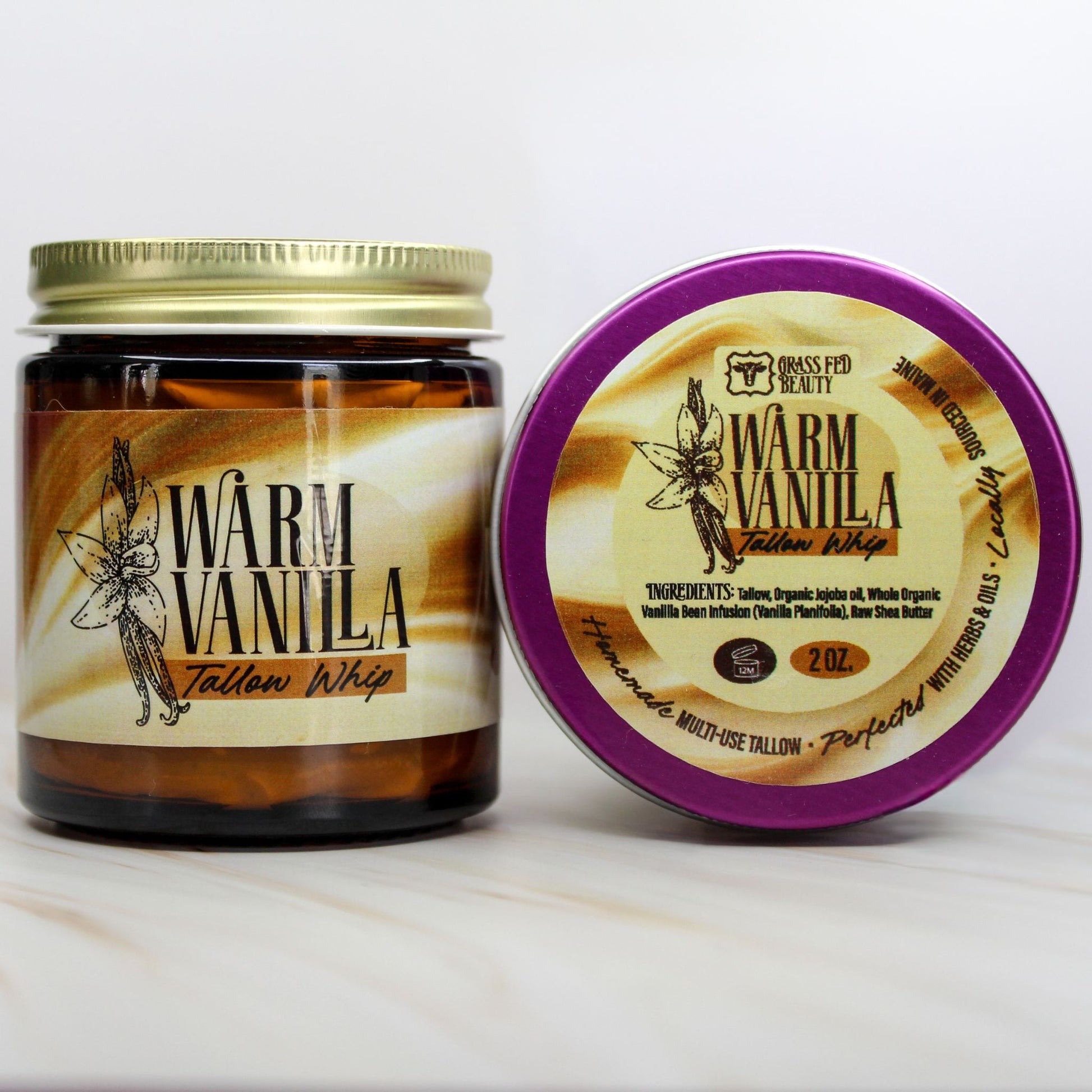 Warm Vanilla Tallow is a rich, comforting balm designed to deeply nourish and soften the skin while wrapping you in a subtle, naturally warm aroma. Made with locally sourced beef tallow and infused with real organic vanilla bean, this formula delivers lasting hydration and a smooth, velvety finish.